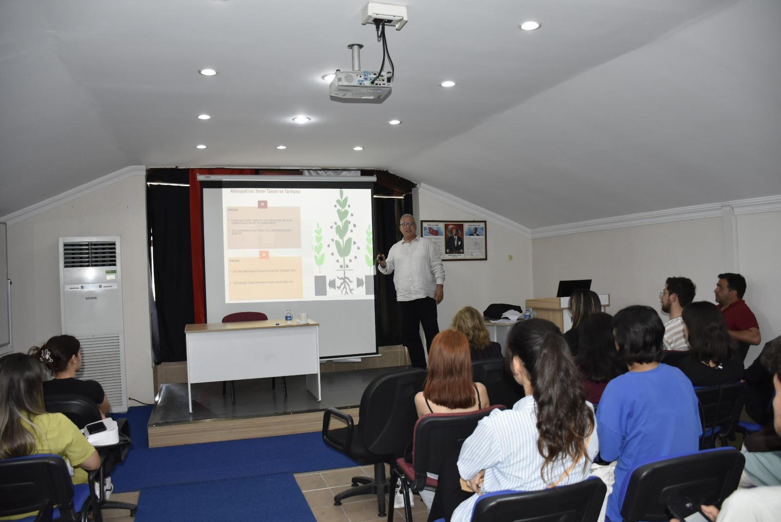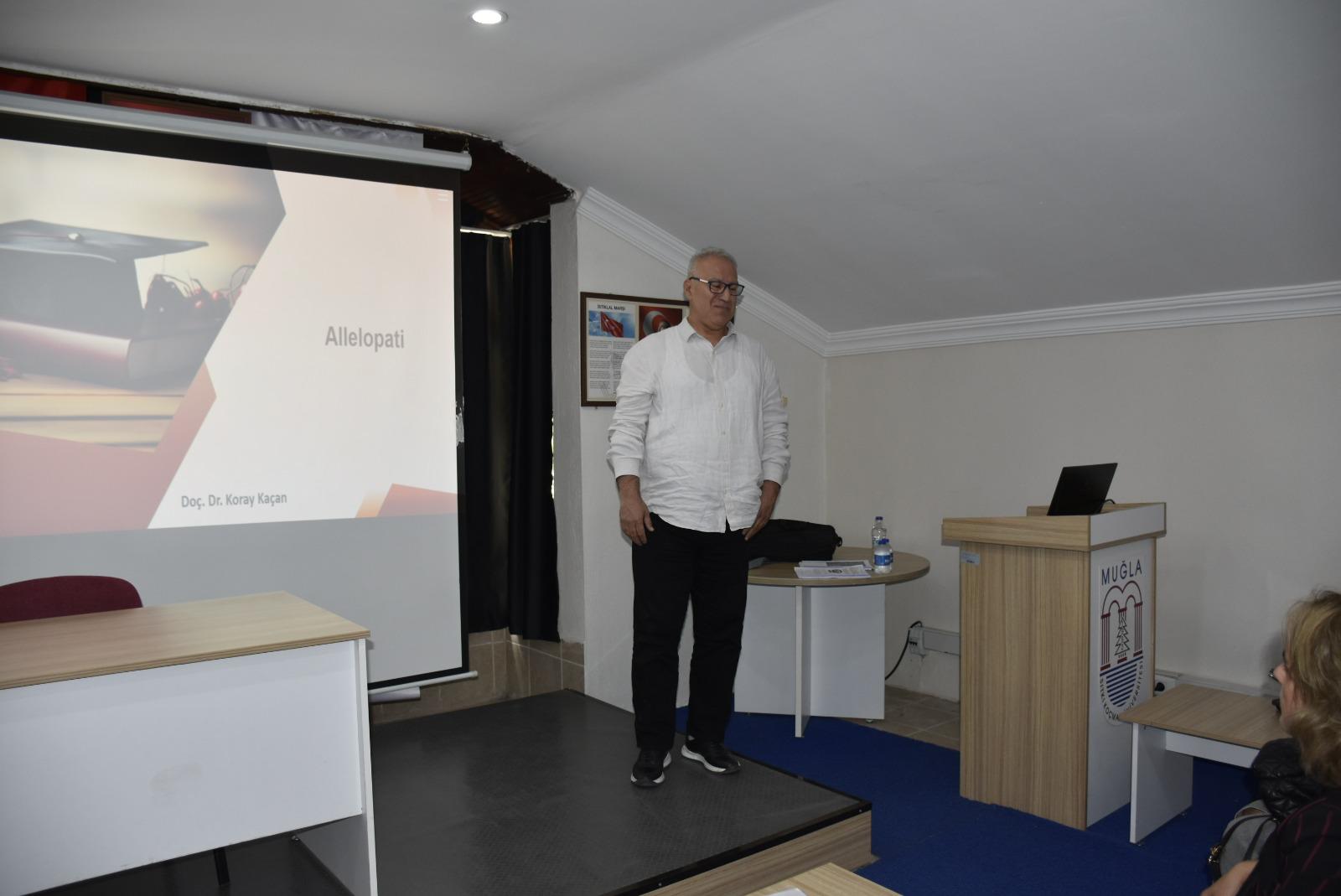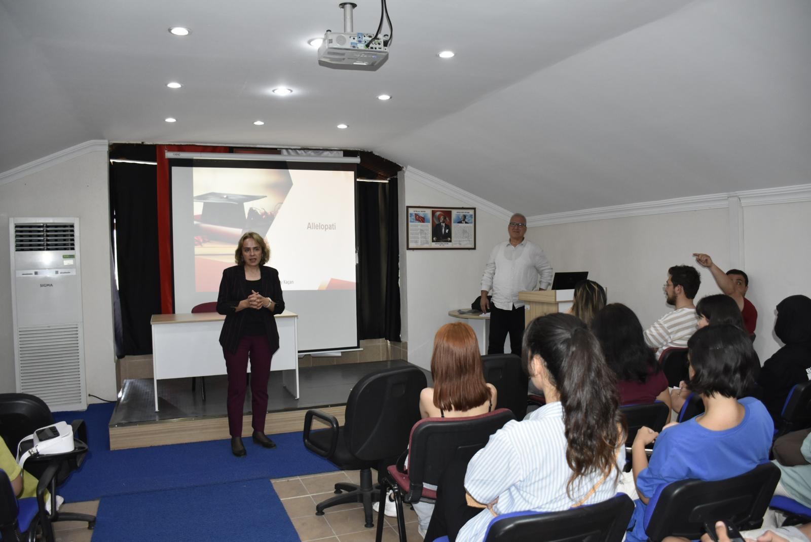 Allelopati Semineri Kozmer Araştırma Merkezi Müdürlüğü'nde görevli öğretim üyesi Doç. Dr. Koray KAÇAN tarafından "Allelopati" konulu seminer gerçekleştirildi. Seminerde Allelopati tanımı, tarımda kullanım şekline ve gelecek nesiller için uygulanmasının önemli bir konu olduğu hakkında bilgilendirmeler yapıldı. Sayın hocamıza Yüksekokul Müdürümüz Doç. Dr. Hatice ULUSOY tarafından teşekkür belgesi takdim edilmiş ve Öğretim Üyemize değerli katkılardan dolayı çok teşekkür ederiz. 8.11.2025